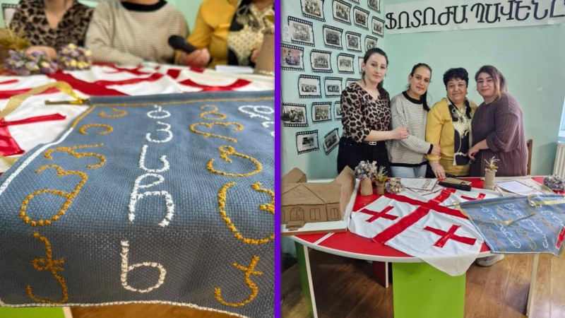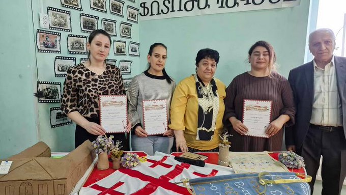 «Наша школа отмечает свой 60-летний юбилей, и по этому случаю родители учеников пятого класса приготовили подарок для школы. Чнашхарик Антаносян, которая подготовила замечательный и уникальный подарок — вышила грузинский алфавит. Гоар Курдоглян, которая сшила грузинский флаг, и Кристине Абдулкян, которая сделала картину школы из глины. Спасибо родителям», — написано в информационном листе школы.