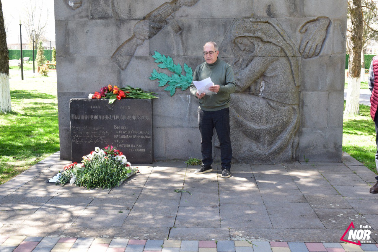 Левон Варданян выступил с речью у Мемориала Великой Отечественной войны, где особо подчеркнул, какие села муниципалитета Ниноцминда участвовали и погибли в Великой Отечественной войне.